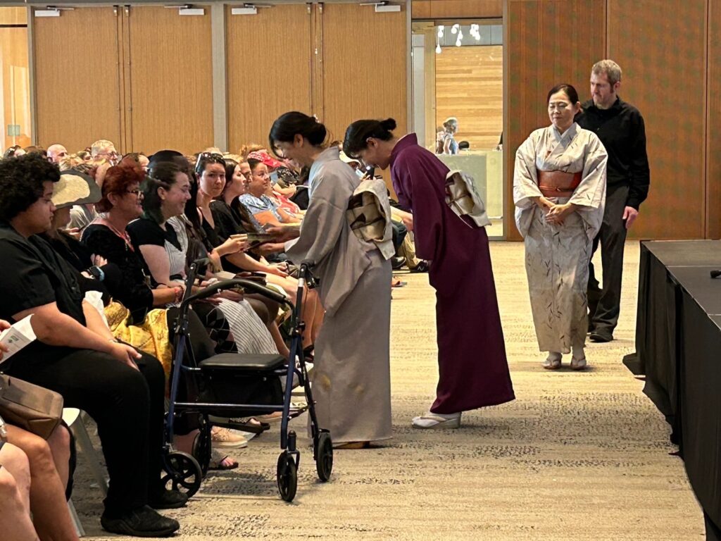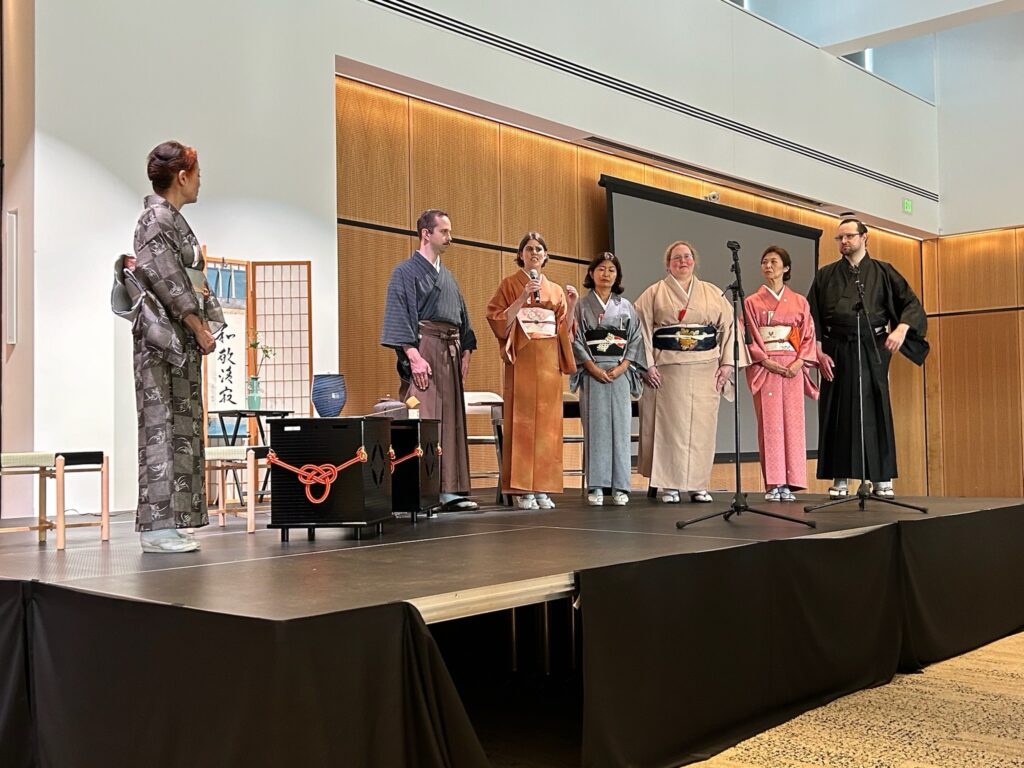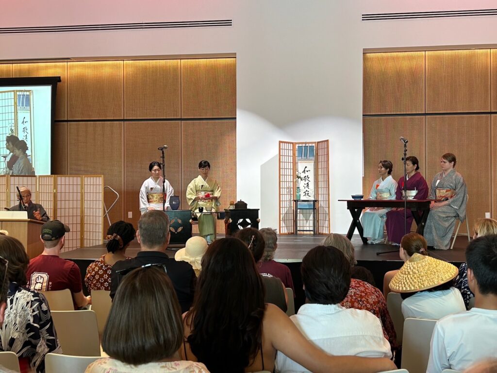 私達のグループ、茶道ソサイエティオブセントルイス『純心庵』は一日目、二日目に御園棚のお点前のデモンストレーションを満場のお客様の前で、成功裏に終えることが出来ました。今年は手元の小さなお道具類をスライドにして、また、説明も加えてお客様によく見え、理解していただくよう工夫してみました。何人かの方に、素晴らしかったとお褒めの言葉をいただきました。生徒さんの日頃のお稽古の成果が出せたと思っています。