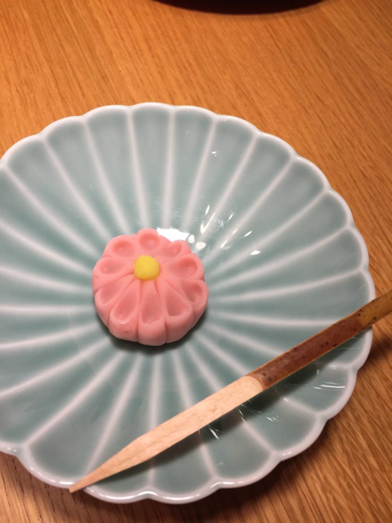 1ヶ月早い炉開きですが、お稽古のために菊をイメージした練り切りの和菓子を作りました。
