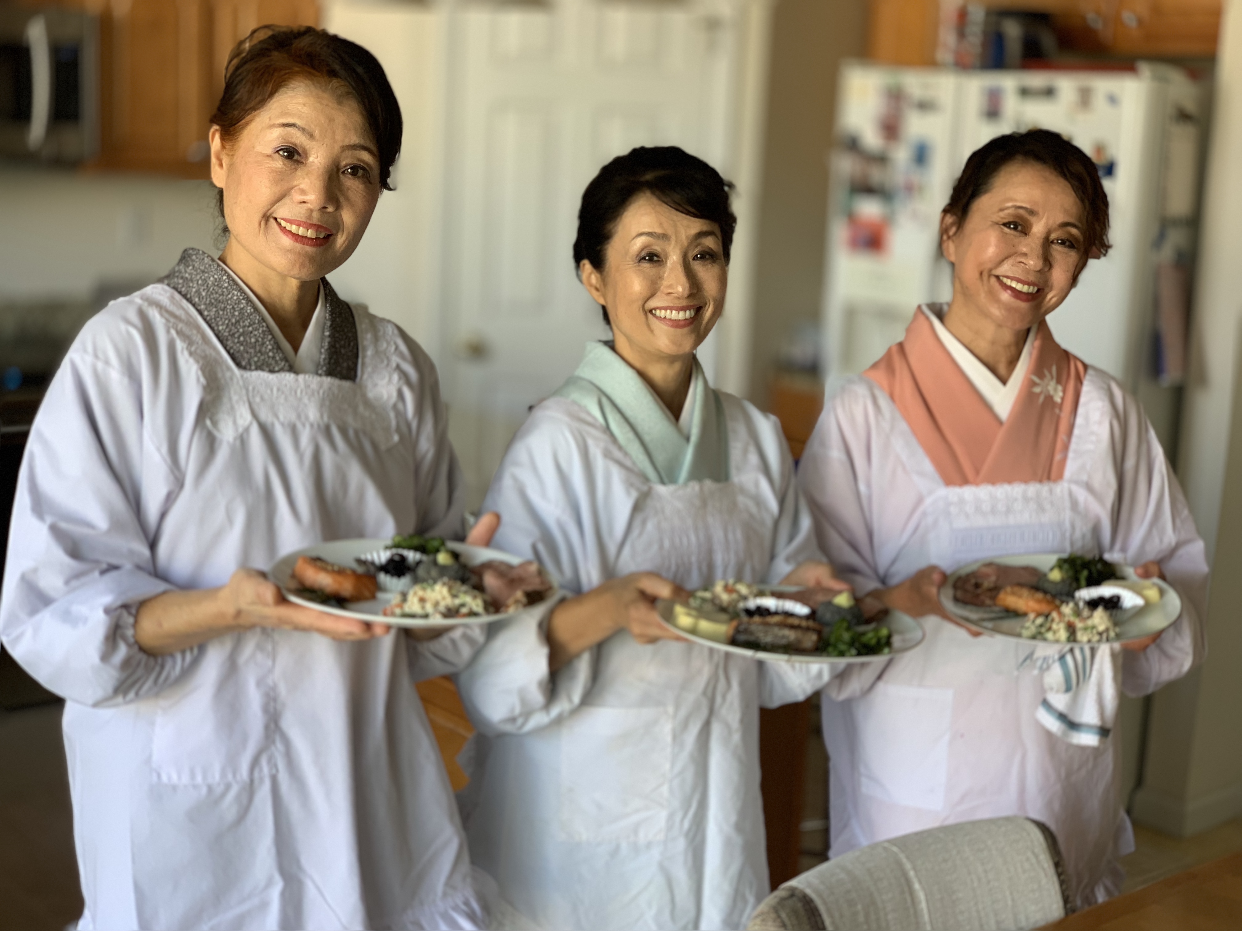 昨年の食事は注文したお弁当をいただきましたが、今年はささやかながら手作りの料理を2人の生徒さんにも手伝って頂いて作りました。