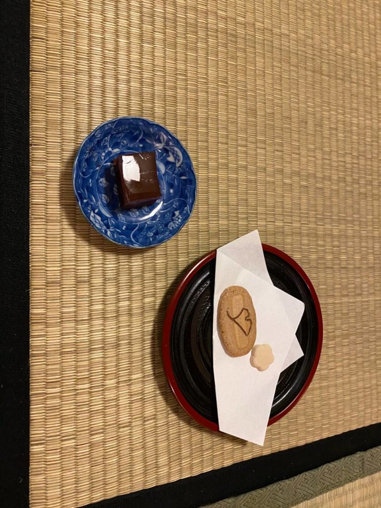 Sweests: mizuyokan, senbei rice cracker and wasanbon.