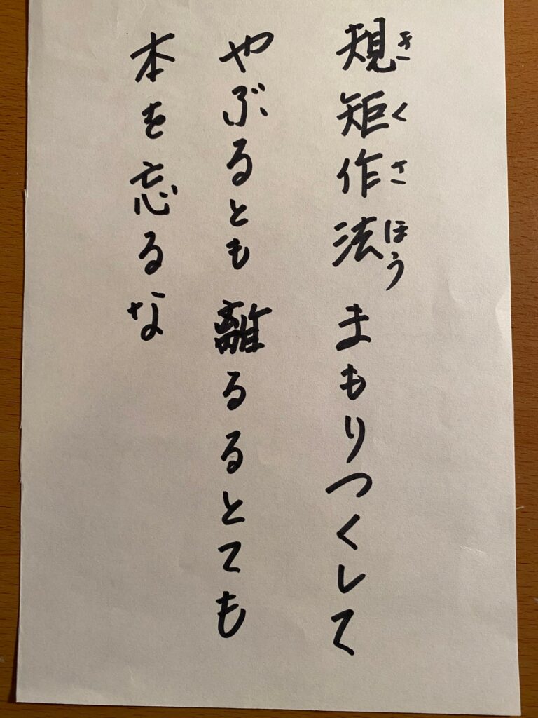 この教訓は私達、道半ばの修行の身の者達には、到底当てはまるものではありませんが、道を究め熟達した茶人であっても、たとえ決まり事や作法を破ったり逸脱したりしたとしても根本の原理を忘れてはいけませんよということなのです。基本が如何に大切であるかと説いているのですね。