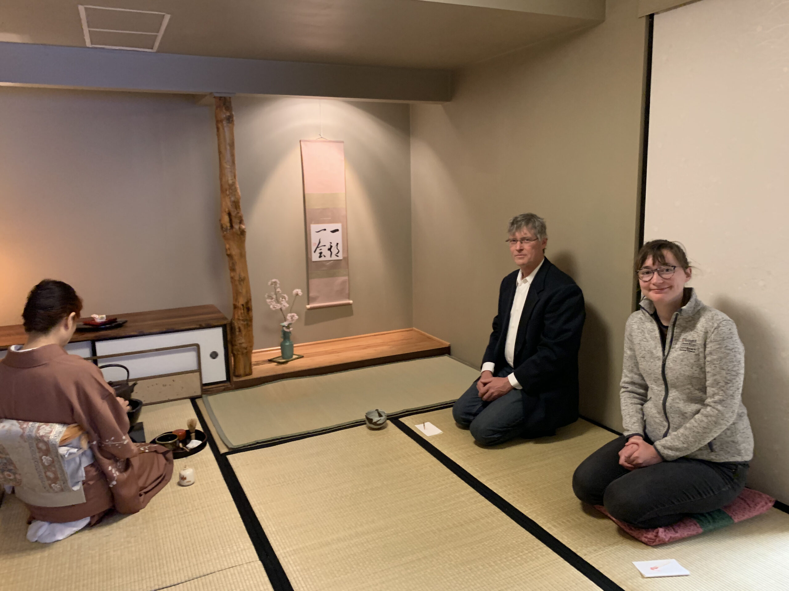 Now, after a year-long pandemic, the students and I who have already had the COVID vaccine shots feel a little safer. Last week we welcomed a potter, Tom, and his five students from a local pottery class to our Junshin-An tearoom. We took precautions by limiting the number of guests to two for each of three separate sessions.