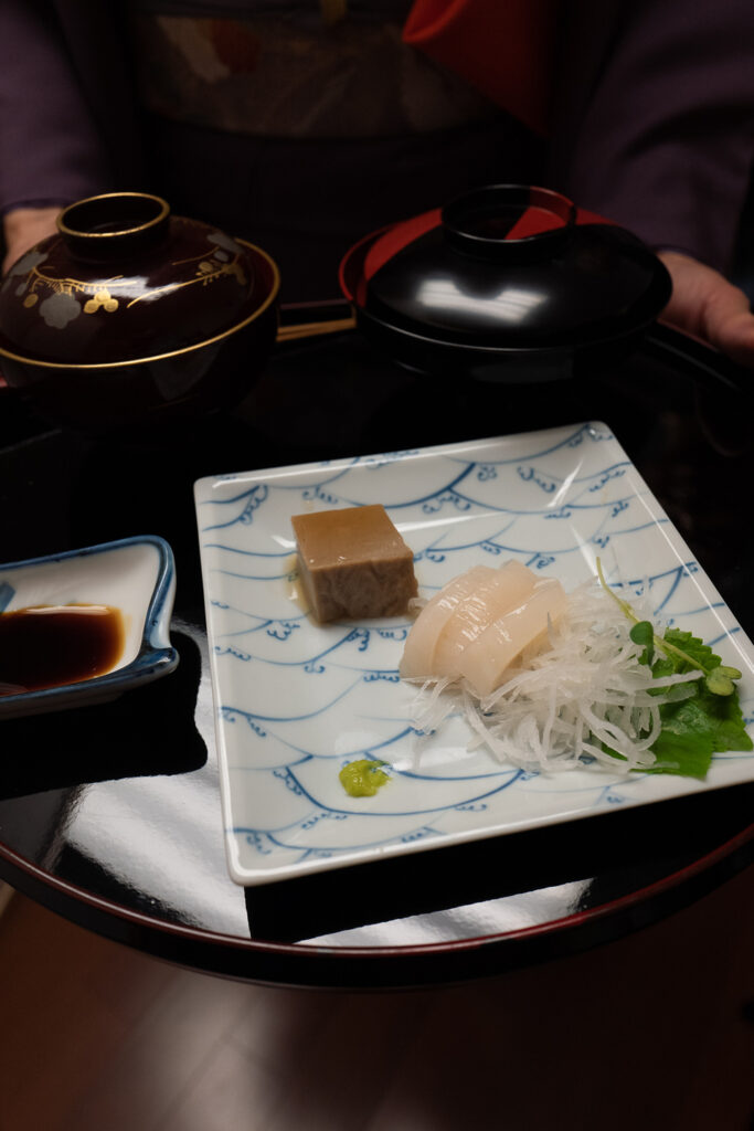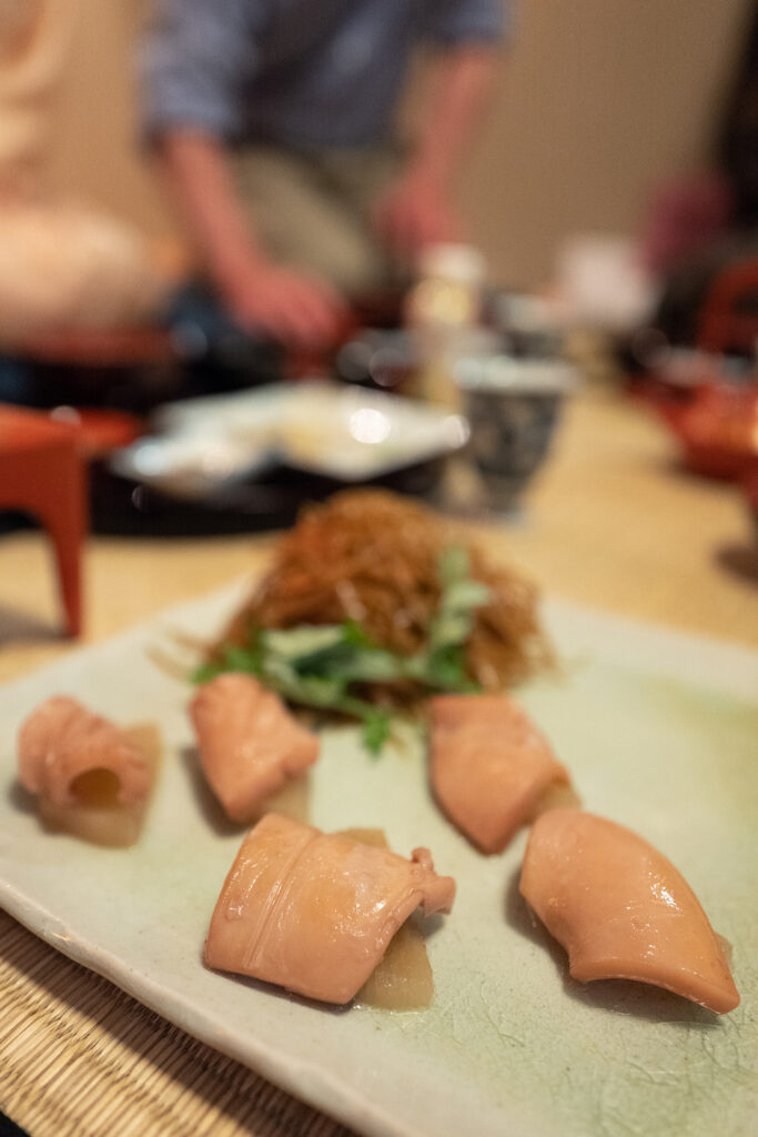 During the dinner, we did chidori no sakakzuki, the exchange of sake between the host and guests. Considering the pandemic risks, the guests used their sake cup instead of sharing one.
