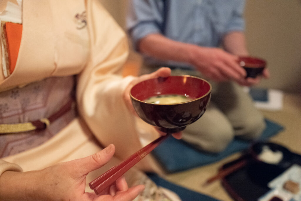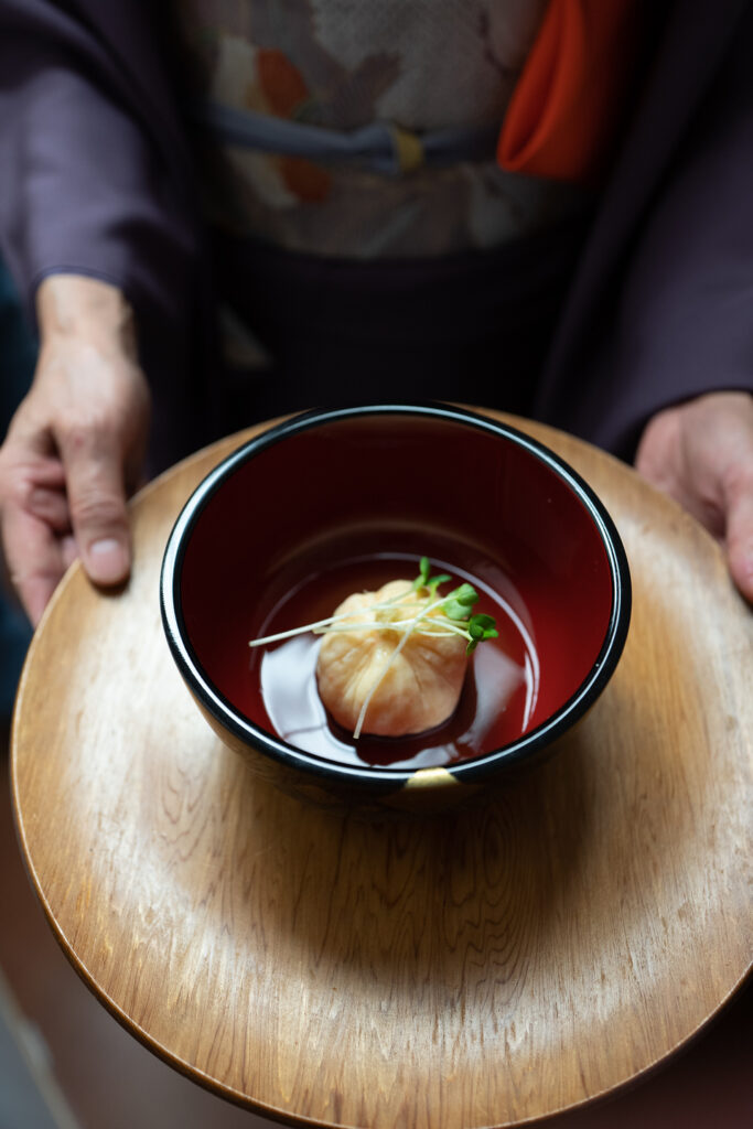 懐石を頂く中で、千鳥の盃も経験してもらいました。パンデミックの中ですので、実際にはそれぞれの盃で交わしましたが。