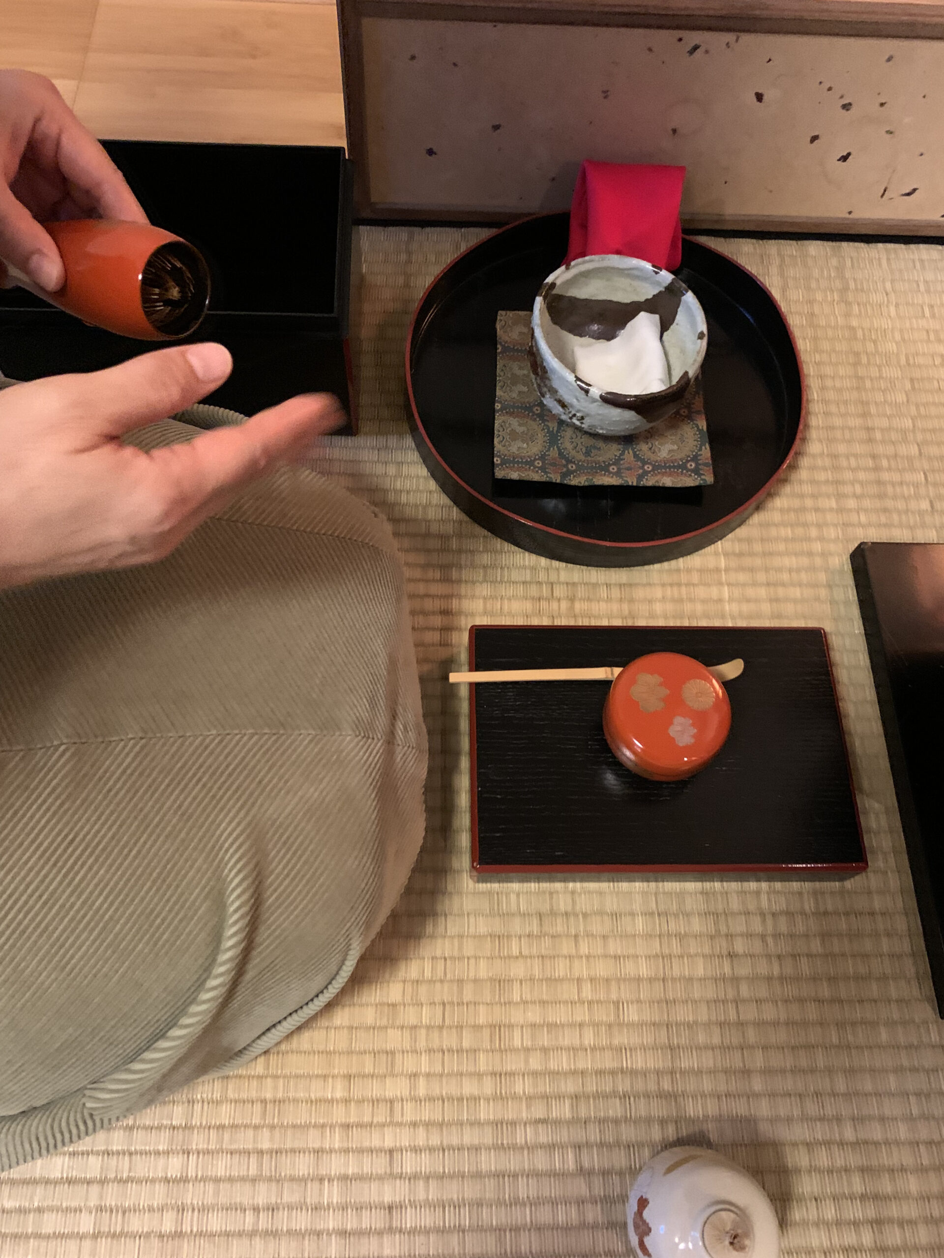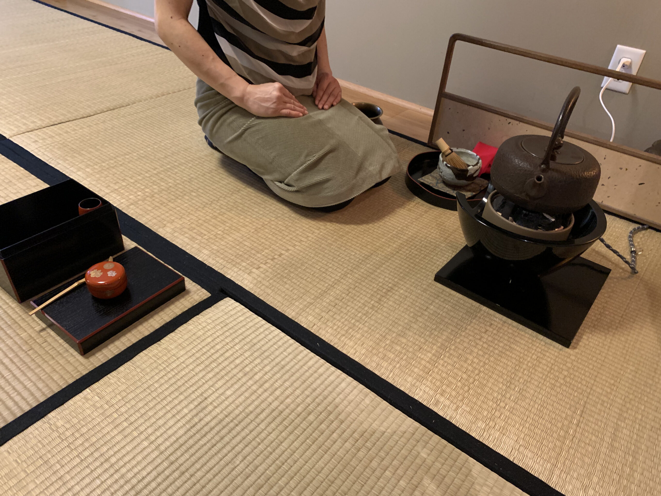After over a month of ryurei style (the procedure using the table and chair) practice, some of the students struggled sitting on the tatami mat again.