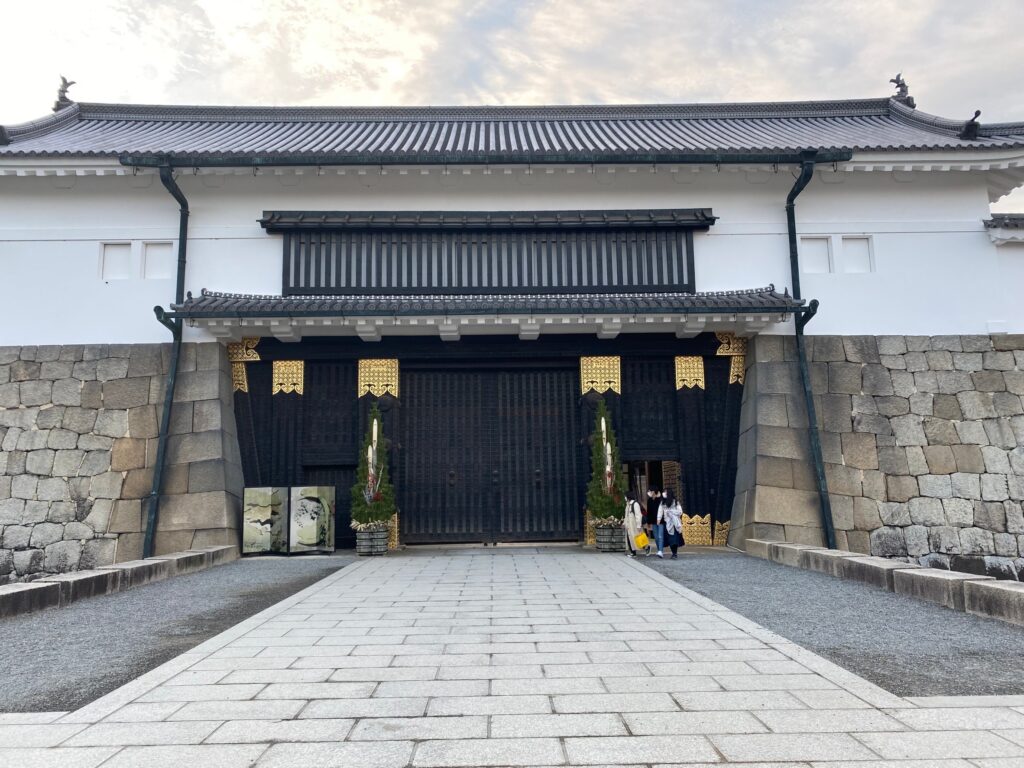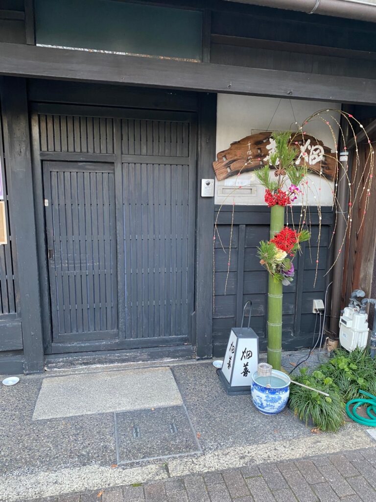 二条城の門前にも門松がたちました。お料理屋さんの正月飾りもすてきでしょう?