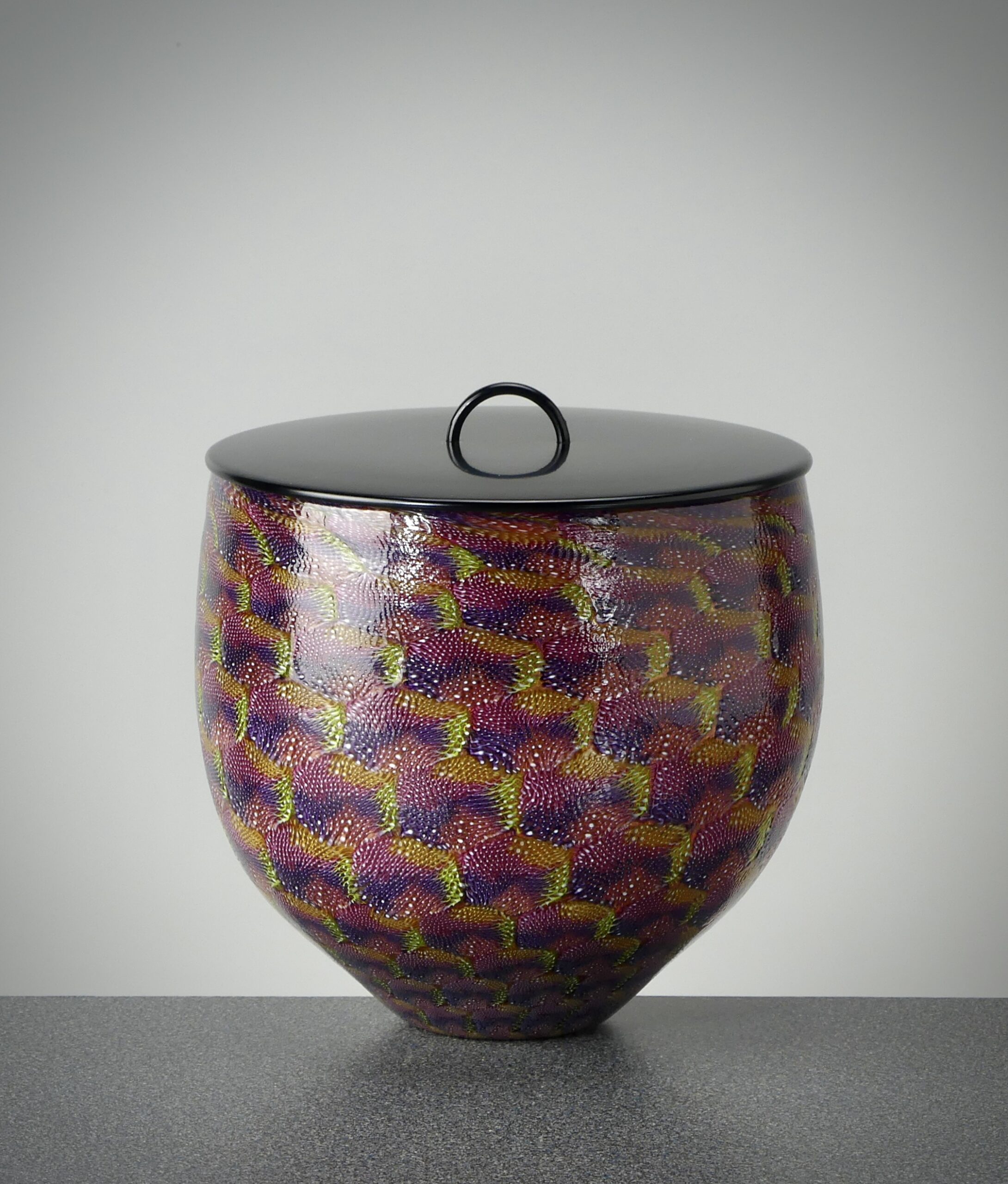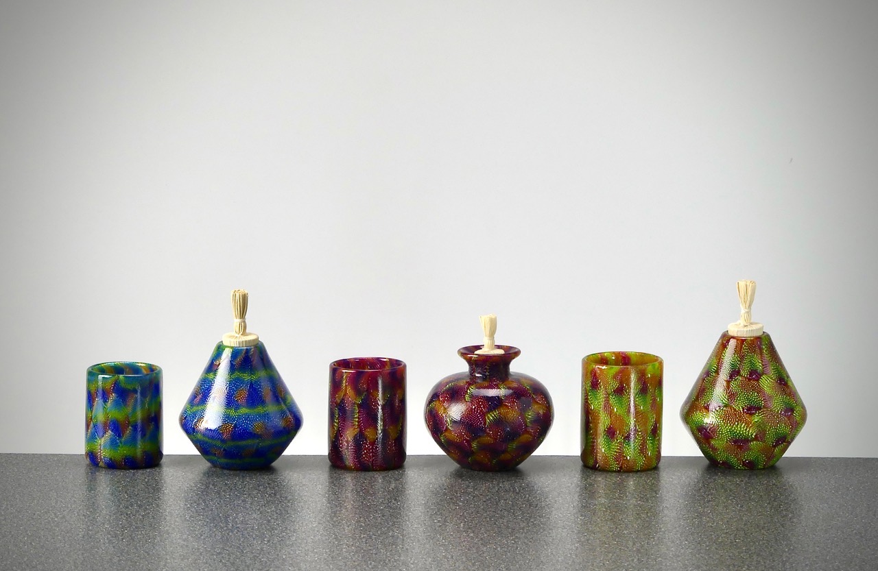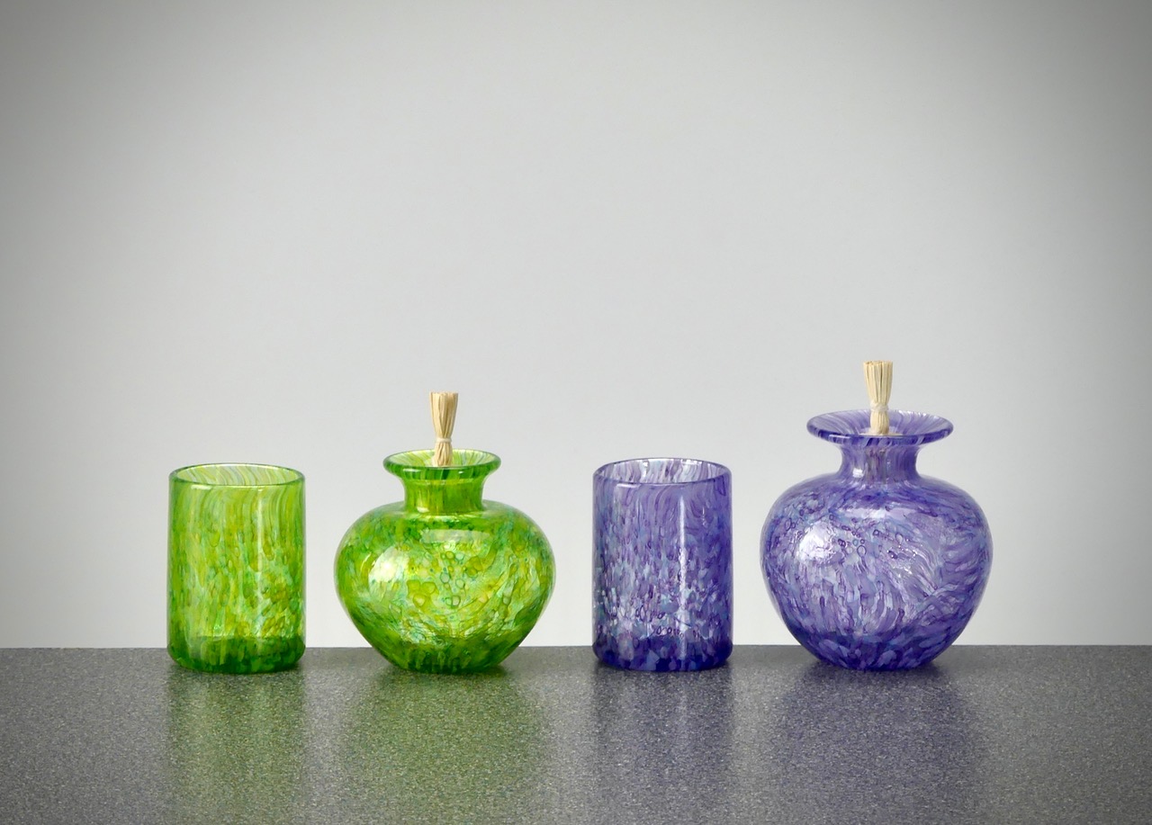 Kaeko Maehata, our friend who joined our tea ceremony practice in Junshin-An last year, created beautiful glass sets—furidashi and kinzutsu—for the box tea procedures. She and her husband, Sam, are well-known glass artists residing in Augusta, Missouri, and their glass art is simply exquisite. She used murrini-glass rods (patterned in cross section and thinly sliced) or zanfirico-glass rods (twisted lace pattern.)
