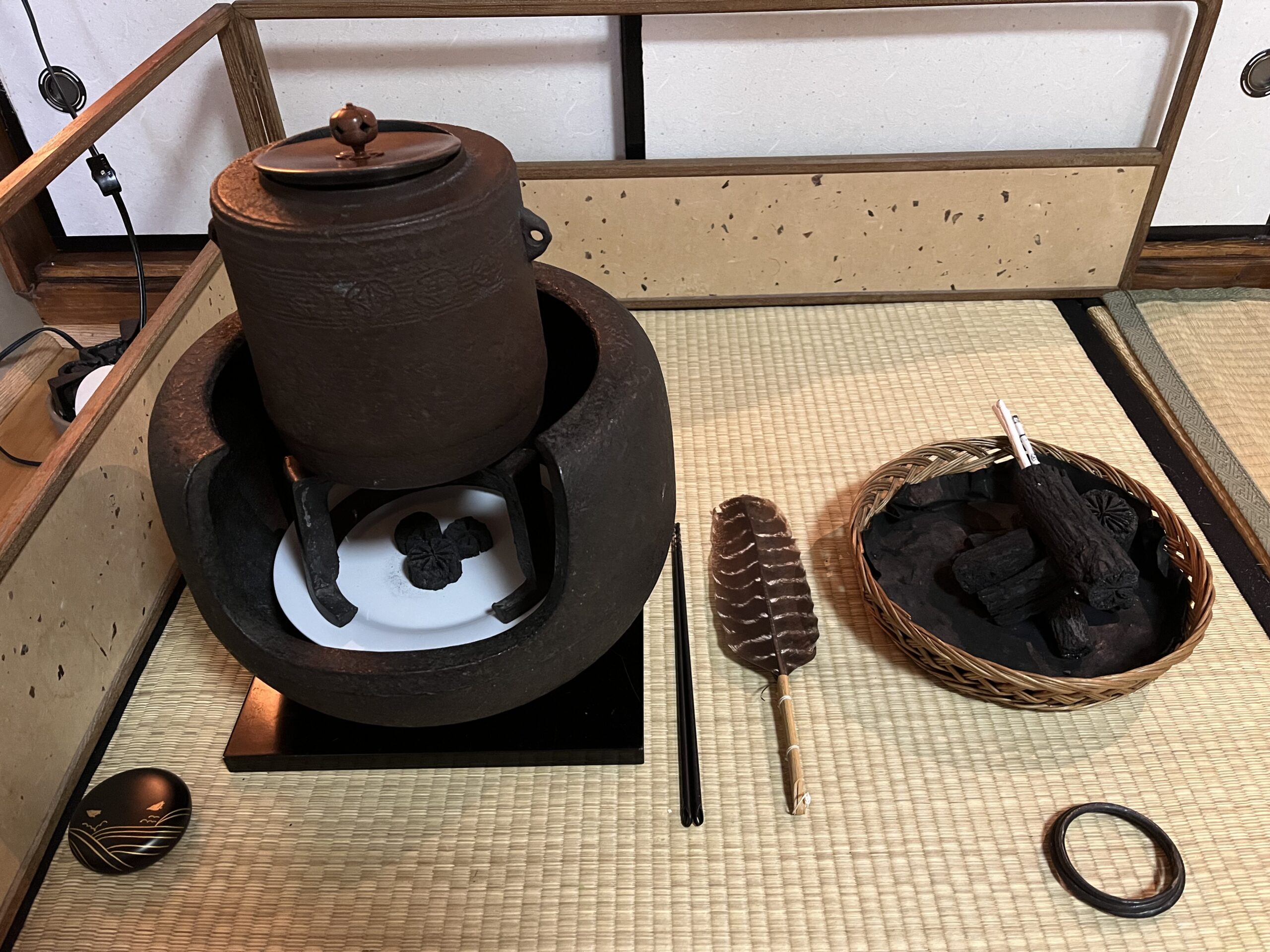 第2週は、一組のみ持ち合わせている風炉用炭一式で、風炉初炭手前をしました。