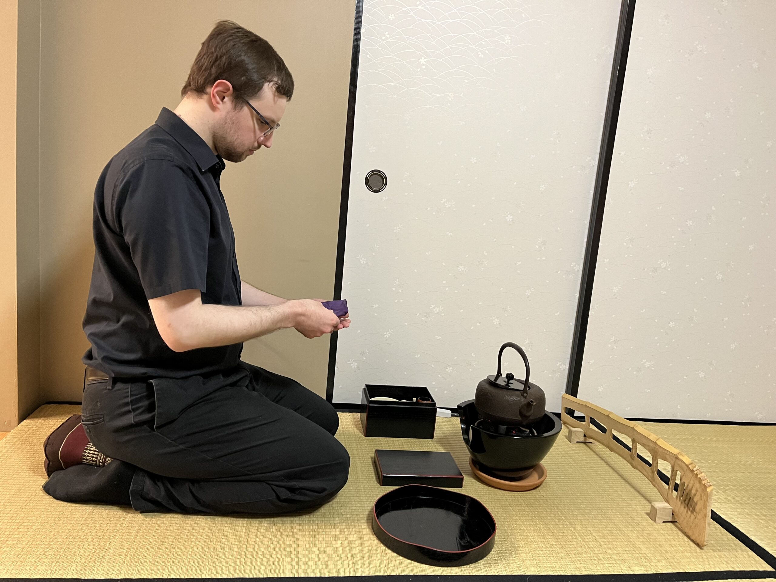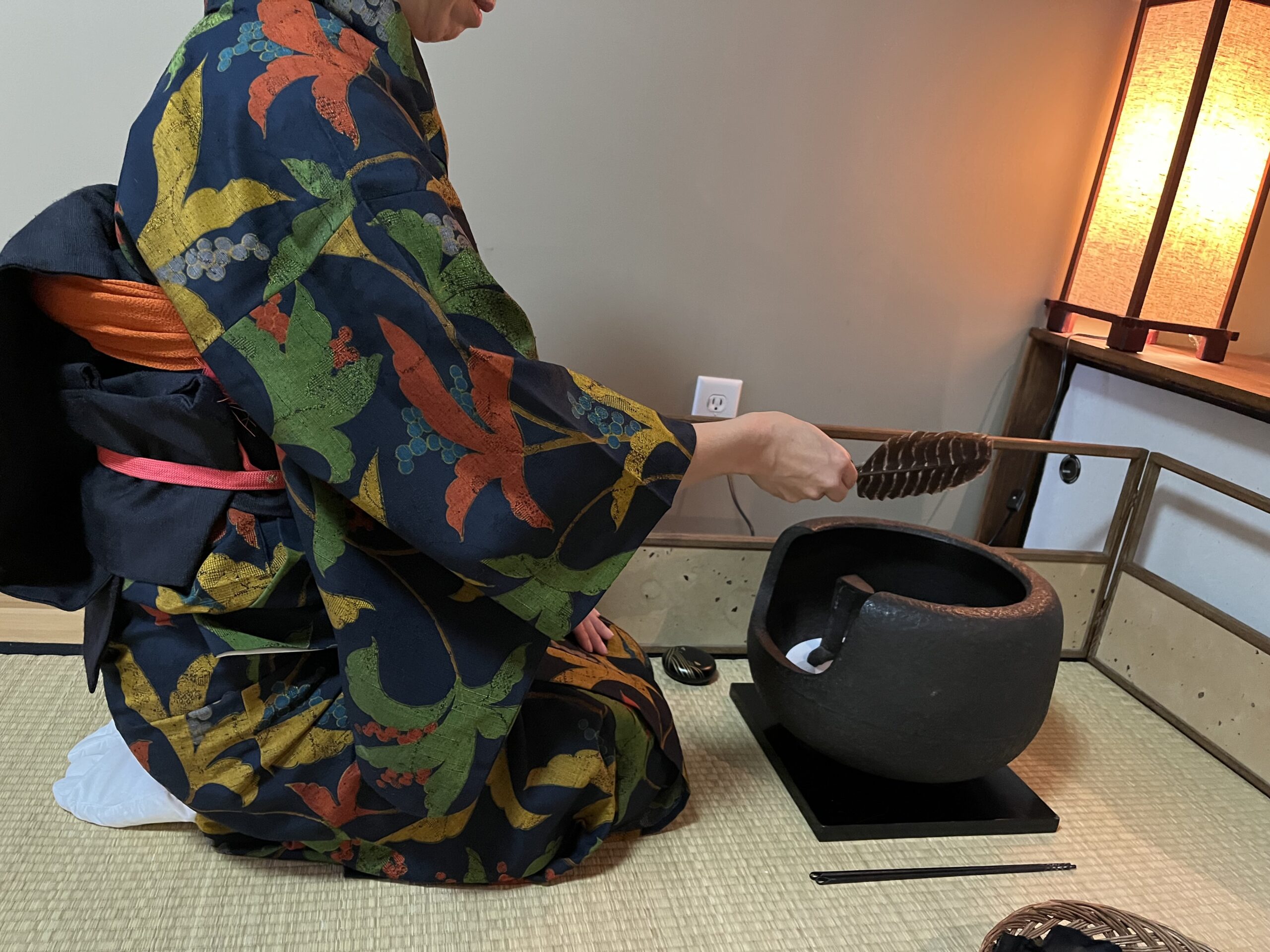 After reviewing the basics of this procedure in the first week, we practiced shozumi demae, the first charcoal procedure. Later we went through one of the basic tea box series, unohana demae.