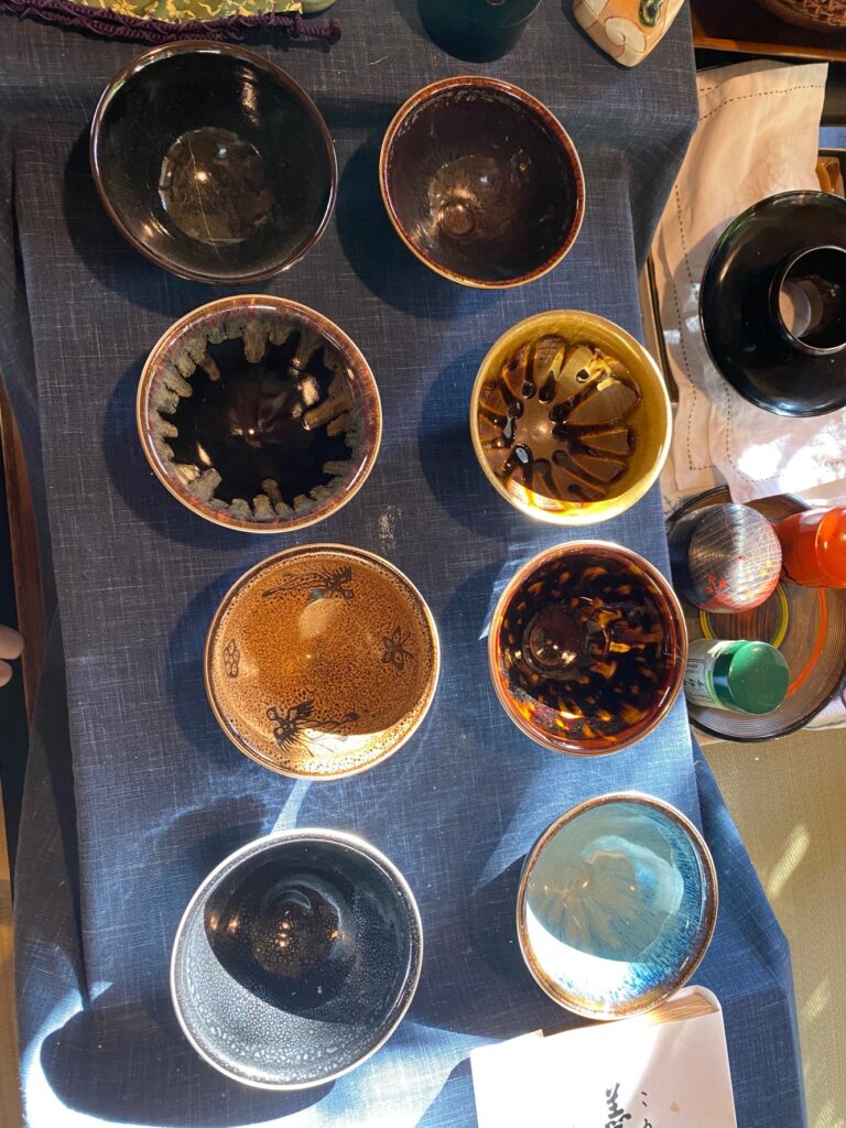 天目茶碗の数々、大宗匠のお手のお軸、香合 等々。