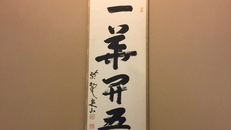 University of Illinois at urbana-champaign のJAPAN HOUSE を見学に行きました。残念ながら時間が間に合わずお点前は見ることができませんでしたが、日本から来ていたという素晴らしい掛け軸を拝見することができました。禅宗の初祖達磨大師が弟子に伝えた禅語で、書は大徳寺大慈院住職戸田実山(この書では紫野実山)と書かれています。 一華開五葉 いっかごようをひらき 結果自然成 けっかじねんになる ikkagoyouwohiraki kekkajinenninaru” one flower opens five petals( leaves). Eventually it will naturally produce seeds. [一輪の花が五弁の花びらを開くように、迷いや煩悩から解かれ清浄無垢な心に立ちかえれば、五つの智慧により、やがて自然に仏果菩提の実を結ぶ]という意味だそうです。 We visited the Japan […]