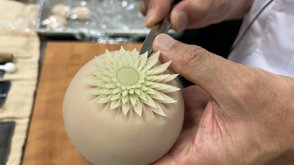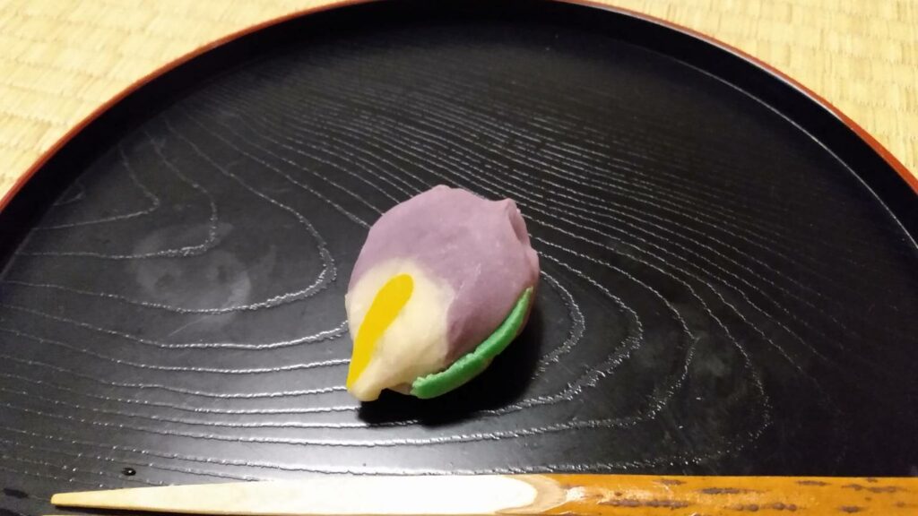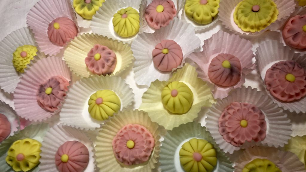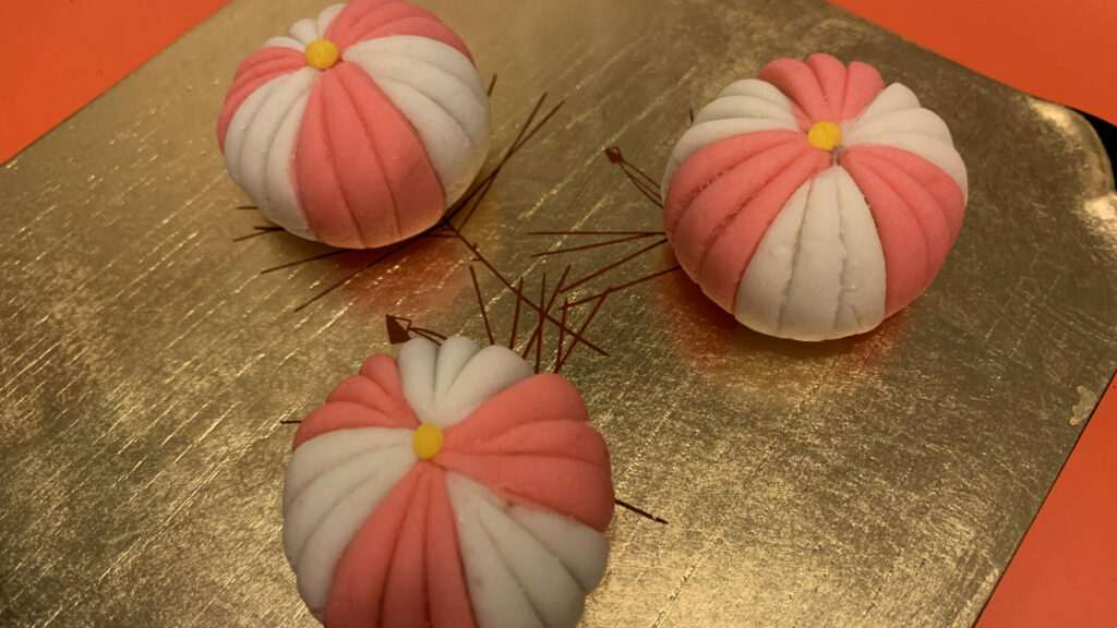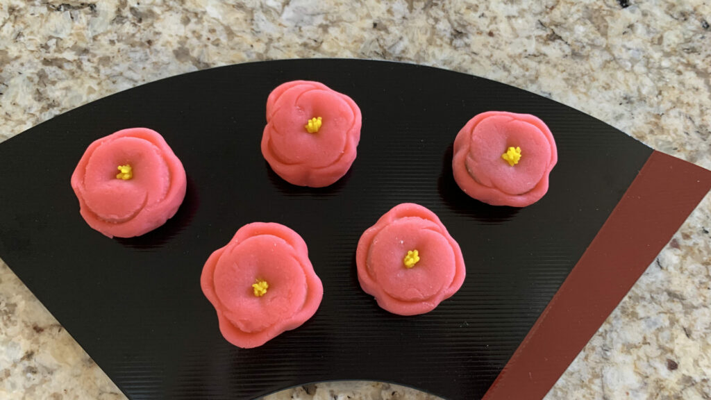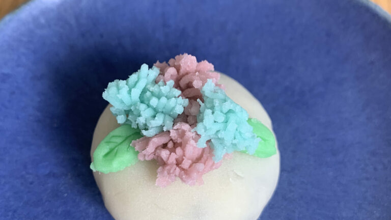 今月のお菓子は、『宗旦』です。 裏千家三代の宗旦宗匠は白い一重の花に底紅の木槿(むくげ)を好まれたとのことで、今もこの花は「宗旦むくげ」と呼ばれています。本当は、白い花びらなのですが、中餡が白で白が重なってしまうので、少しアレンジして薄紅色の花びらにしたので、こちらは「宗旦風むくげ」です。400年近くも前に、宗旦はこのむくげを床間にかざってお茶を点てていたのかと想像すると、ちょっと遠い歴史の存在だった人が少し近くなったような気がします。 This month’s confection is “Sōtan.”It is said that Sōtan, the third-generation head of the Urasenke tea school, was fond of the white single-petaled hibiscus flower (mukuge) […]