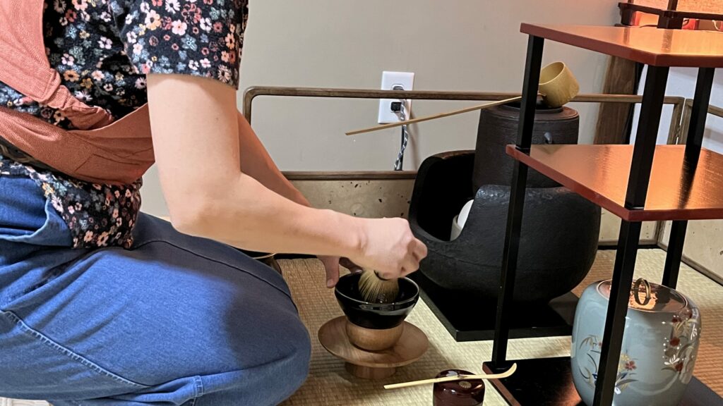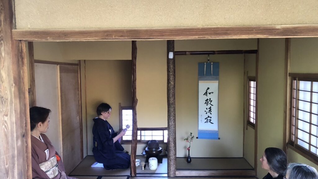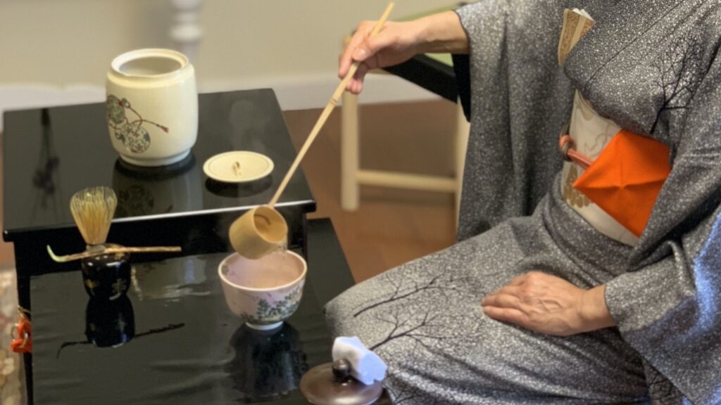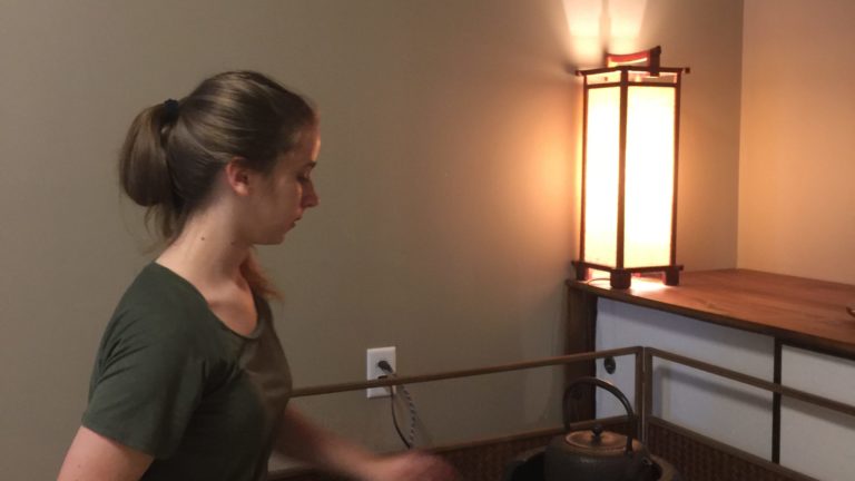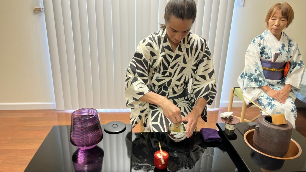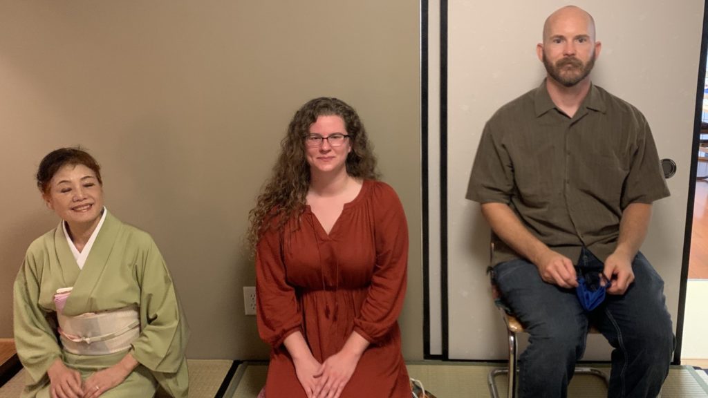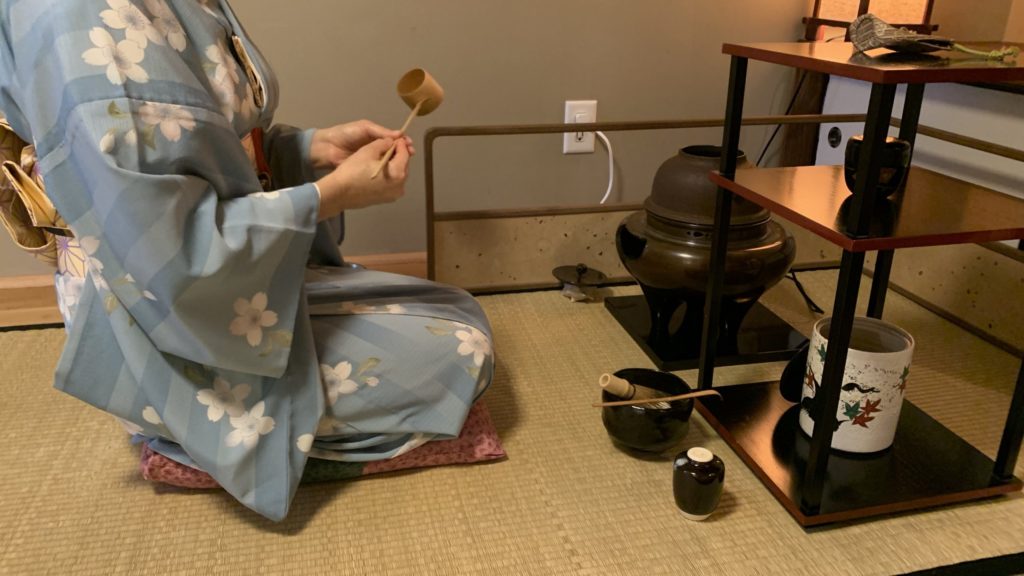 セントルイス在住の女性が、アイダホから尋ねてこられたお母さまとご一緒に純心庵に茶道体験に来られました! 日常生活でヨガをされたり、お抹茶を飲まれたりしていて、日本の茶道に興味を持たれ私たちのウェブサイトを見て連絡をくださったのです。 まずはお茶室の床の間のお軸『和敬静寂』を説明。薄茶点前を披露して手作り水ようかんのお菓子。 そのあと、盆点前をしながら基本的な袱紗捌きで道具を浄め、薄茶を自分自身で点てる体験をしました。 お二人とも初めてとのことでしたが、きめ細かにおいしそうなお茶を点てることができました。 A lady living in St. Louis came to Junshin-an for a tea ceremony experience with her mother, who had come to visit from Idaho! She […]