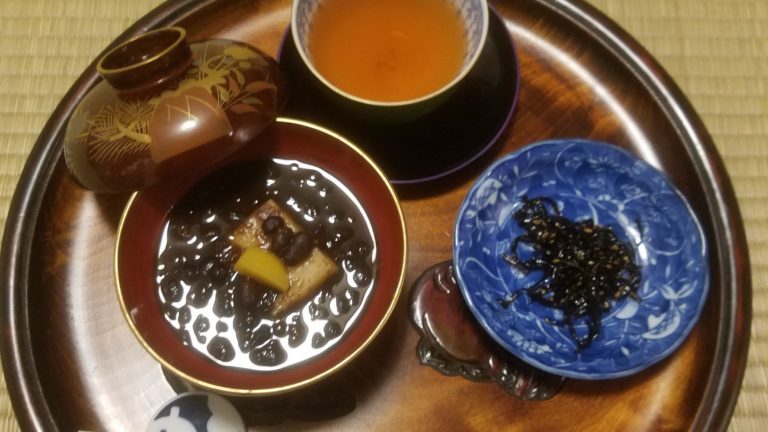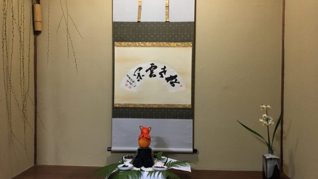 11月の炉開きには少し早いのですが、都合により風炉から炉に替えて薄茶運び点前のお稽古をしました。 炉開き恒例の『ぜんざい』を作って皆さんに食べていただきました。 軸は『和敬清寂』。 あっという間の一年でした。11月からは京都からの便りをお届けします。 It is a little early for robiraki (sunken fire place for winter months usually reserved for November to April), but we started our ro-demae practice. When […]