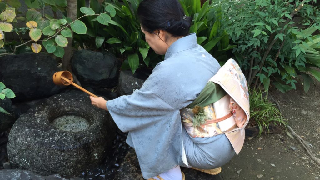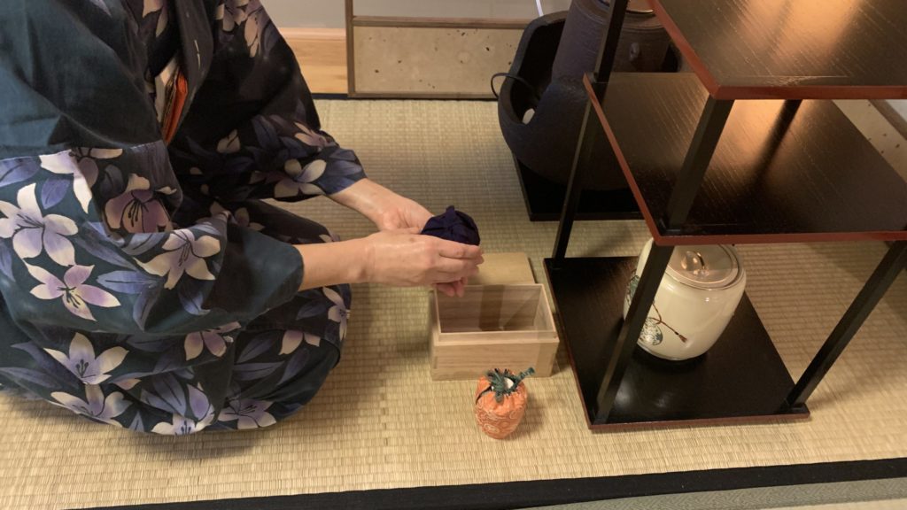連日、ここセントルイスは30度を超す真夏日が続いています。 日本では通常、梶、蓮、里芋などの葉を水指の蓋として使用するのですが、ここセントルイスでは手に入りにくいので我が家の庭に青々と茂っているギボウシの葉を代用してお稽古しました。良く洗ったみずみずし葉が、いっときの清涼感を運んでくれました。 The days have been hot in St. Louis. More than 90 degrees. So I decided to practice the Habuta-Demae. A summer season’s procedure to make my students feel cooler. […]