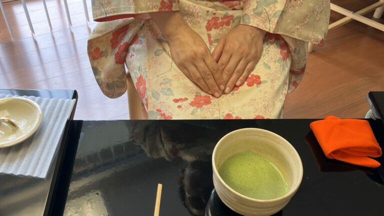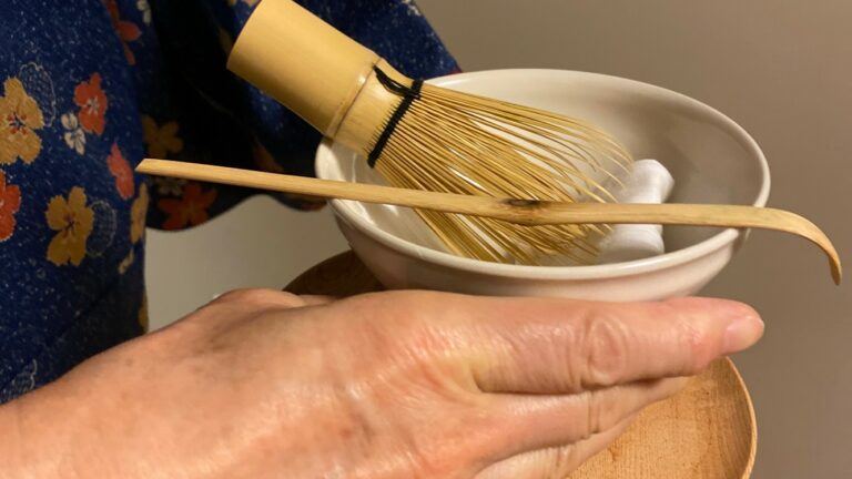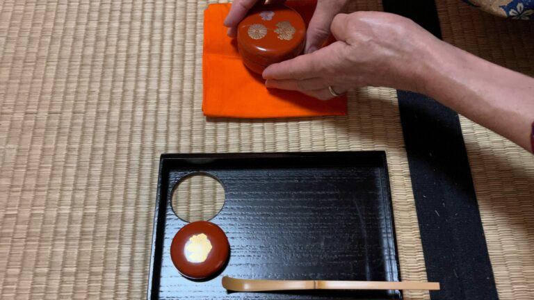 2025年9月第二週 日本祭が終わって一週間はお稽古はお休みして、ゆっくりと疲れをとることが出来ました。 秋のお点前、茶箱の月点前をお稽古しました。 茶箱の中でも器据え、火箸、香合、小羽根、ウグイスなどのお道具が総出のお点前。 箱のふたに、小羽根を置き、その下にまあるい香合を置くとまるで、雲間に満月が出たような景色になります。 ややこしいお点前ですが、風流で、繊細な月点前に感動です。 After the Japan Festival, we took a week off from tea practice, which gave us a chance to rest and recharge.When we […]