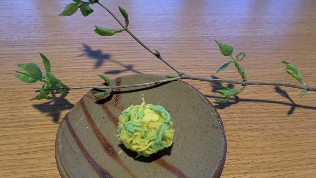 5月のお菓子はきんとんにしました。 きんとんふるいの持ち合わせが無いので、網目の粗そうな料理用ざるを使用して。。。 新緑の緑の藪の中に咲くピンクの躑躅。 5月の長野庵での茶会は雨漏りの為、キャンセルになりましたので、我が家の純心庵で2枠だけ設けて行いました。 きんとんのお菓子、大好評でした。 For the May sweets, I chose kinton (a type of traditional Japanese confection). Since I didn’t have a proper kinton sieve, I used a coarse-meshed […]