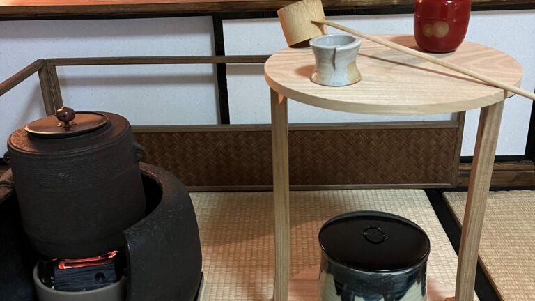2025 年 4月 私がセントルイスに戻る前に、伏見の林先生の元へしばらくお会いできない旨のご挨拶に伺いました。 先生はコロナの終焉以降、お茶のお稽古場を閉じられています。。。 その際に、以前から皆具の作製をセントルイスの陶芸家に依頼しているけれど、未だに納品してもらえないという話題になりましたら、先生がお持ちの皆具一式を持たせてくださいました。 道中割れないように、丁寧に梱包しなおしてセントルイスまで運んできました。 その皆具のお披露目の長板薄茶炉点前のおけいこでした。 Before returning to St. Louis, I visited Hayashi senses in Fushimi to say goodbye, as I wouldn’t be able to […]