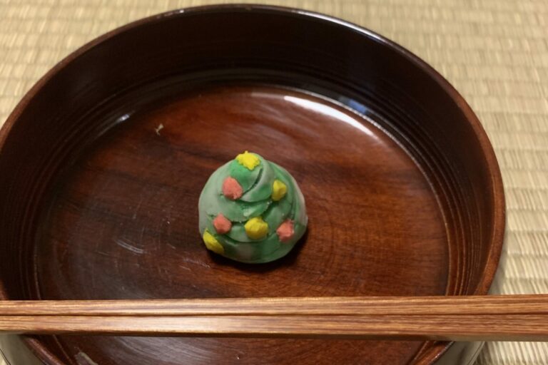 COVID-19で明け、COVID-19に暮れる2020年の最後のお稽古です。床の間は雪景色の水墨画の軸、実家から持ってきました。とても古そうです。外の木々はすっかり葉を落とし、庭には一輪の花もありません。そこで、お店で買ってきた花束の中に緑の菊がありましたので、赤い猫柳の枝と合わせて、赤と緑のクリスマスカラーで遊んで挿してみました。お菓子は手製の練り切り。クリスマスツリーのつもりなのですが… The last practice of the year was wakindate. On the alcove, I hung a scroll that depicted a snowy landscape in Chinese ink. To add a Christmas feeling, I arranged […]
