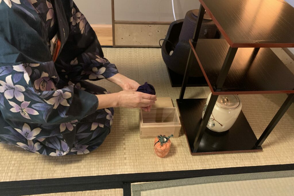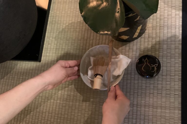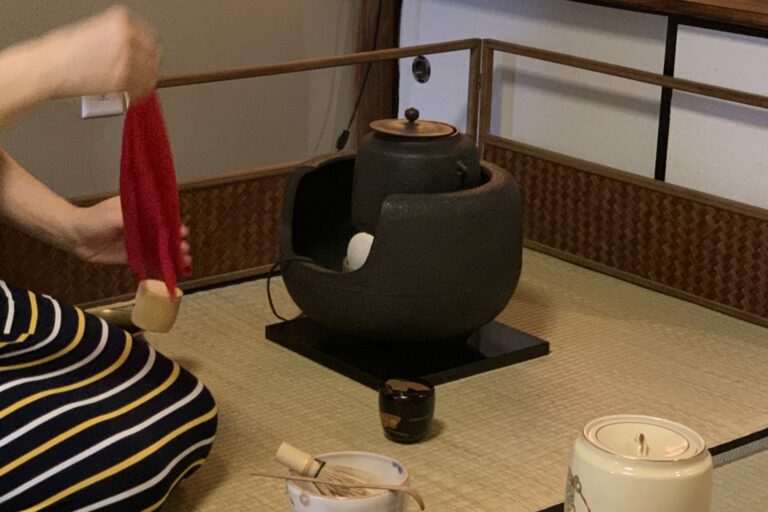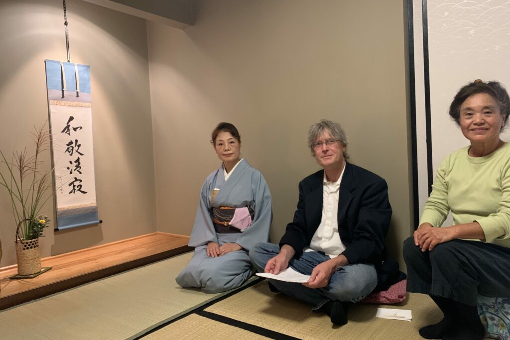長月の晦日に、お茶の生徒さんの長年の友人と彼女の師である陶芸家のトムさんをお迎えしました。沢山の作品を創作する中で、お抹茶茶碗を始めお茶の陶製品に興味を持たれ我家の『純心庵』を訪れてくださいました。お茶の点前を見るのは初めてというお二人に、掛物はお茶の4つの精神をうたった『和敬清寂』を選びました。お花は、この数日の冷え込みでススキの穂が美しく伸びてきましたので黄色い小菊と活けました。好みのお茶碗を選んで頂き、それを主茶碗、次茶碗にして更好棚を用いて薄茶を味わって頂きました。私のガラクタばかりのお茶碗にも大変興味を示されて、お茶室におろして来てある秋に相応しいお茶碗を始め、棚にしまってある数々のお茶碗をじっくりと鑑賞されていました。 On the last day of September, we hosted our friend and her pottery class teacher and professional potter, Tom, at our tearoom. Even though Tom has been making tea […]
