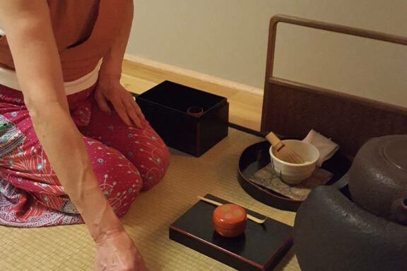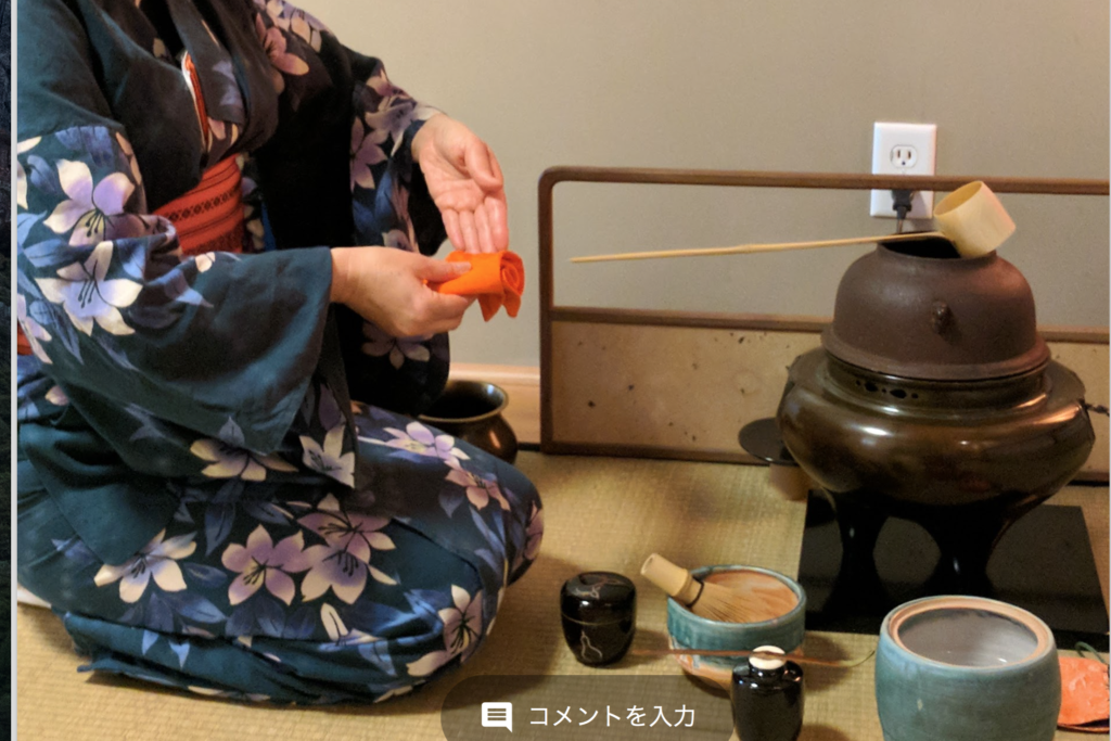 アメリカ在住の妹さんを訪ねてこられた日本からのお姉さま。お二人の姉妹を我が家のお茶室『純心庵』にお招きしました。 アメリカで、日本の文化”茶の湯”を経験できたと喜んで頂けました。 盛夏の点前、葉蓋と洗い茶巾のお点前で、お薄を差し上げました。 主菓子は手作りの抹茶餡大福、掛物は涼しさを誘う金魚、お花は、我が家の庭にやっと咲き出した薄いピンクのむくげの花です。 We had two sisters join our Junshi-an today. An older sister who lives in Japan is visiting her younger sister. The visiting sister was delighted to experience […]
