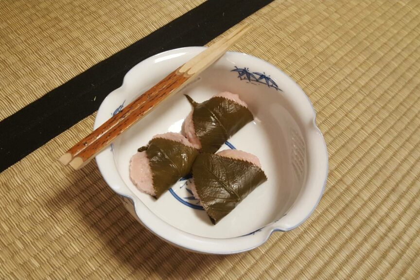 六月三週目の火曜日は、一連の茶事の流れの中で、後炭手前を省略して濃茶点前の後半から薄茶点前にきりかえるお点前『続き薄茶』をお稽古しました。 亭主の都合で濃茶に続いて薄茶点前にかかる場合と客側の都合で続き薄茶を所望する場合とがあります。 その際の問答は問答編を参照してください。 濃茶の主菓子は手作りの『抹茶餡の葛餅』、薄茶の干菓子は『かりんとうと和三盆』。 床の間には日本の梅雨の時期に合わせて『口元に少し笑みあり梅雨仏』の俳句が書かれた掛軸を掛けました。 This third week of June, we practiced tsuzuki-usucha where we serve “thin” tea after “thick” tea omitting the sumidemae (charcoal preparation procedure) between these teas. […]