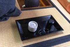宗純先生の京都だより Soujun sensei’s journal from Kyoto 京都でのお稽古、今日は山里棚濃茶点前をしました。山里棚は炉点前のみに使うのだそうです。 お点前中の茶入れ、茶筅は通常の炉点前のように流しては置かないで、風炉点前のように水指の前に置きます。 拝見物を出した後、柄杓は棗の左隣にまっすぐ飾り、陶器の蓋置は下の棚、水指の斜め左前の板ぎりぎりに飾ります。 水次で水を水指に足す時は、蓋は右、左、右と三手で水指の前に立て掛けます。以上が留意しなくてはいけない点かな。。。