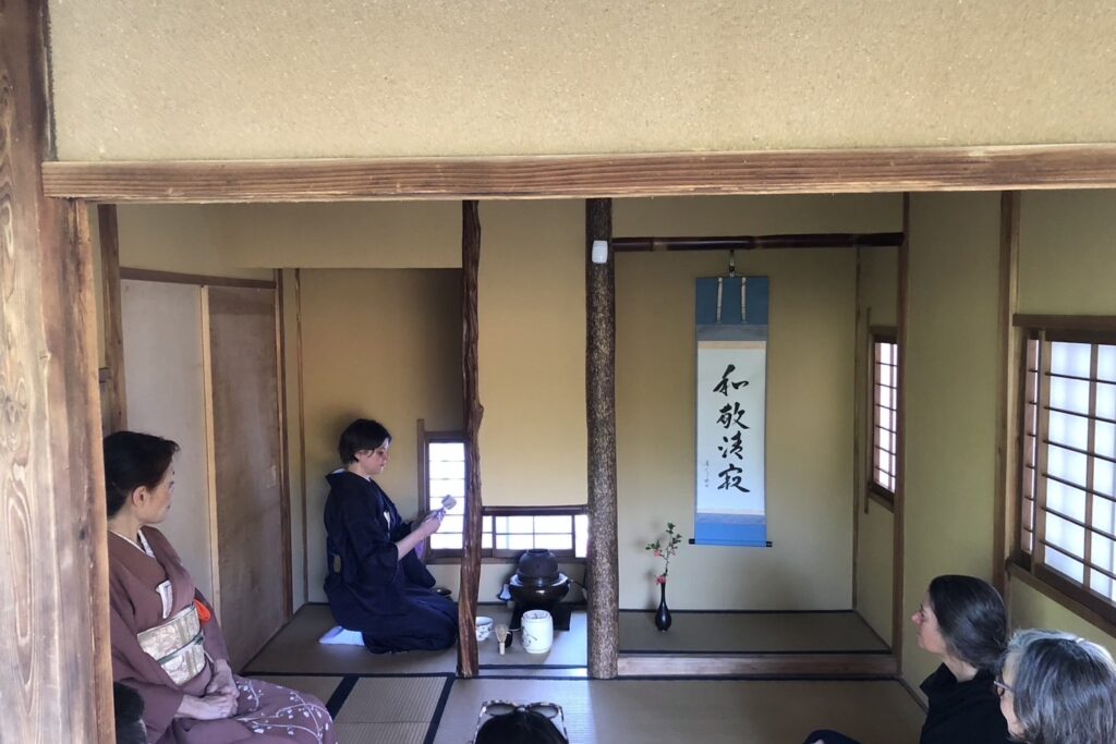 セントルイス在住の女性が、アイダホから尋ねてこられたお母さまとご一緒に純心庵に茶道体験に来られました! 日常生活でヨガをされたり、お抹茶を飲まれたりしていて、日本の茶道に興味を持たれ私たちのウェブサイトを見て連絡をくださったのです。 まずはお茶室の床の間のお軸『和敬静寂』を説明。薄茶点前を披露して手作り水ようかんのお菓子。 そのあと、盆点前をしながら基本的な袱紗捌きで道具を浄め、薄茶を自分自身で点てる体験をしました。 お二人とも初めてとのことでしたが、きめ細かにおいしそうなお茶を点てることができました。 A lady living in St. Louis came to Junshin-an for a tea ceremony experience with her mother, who had come to visit from Idaho! She […]