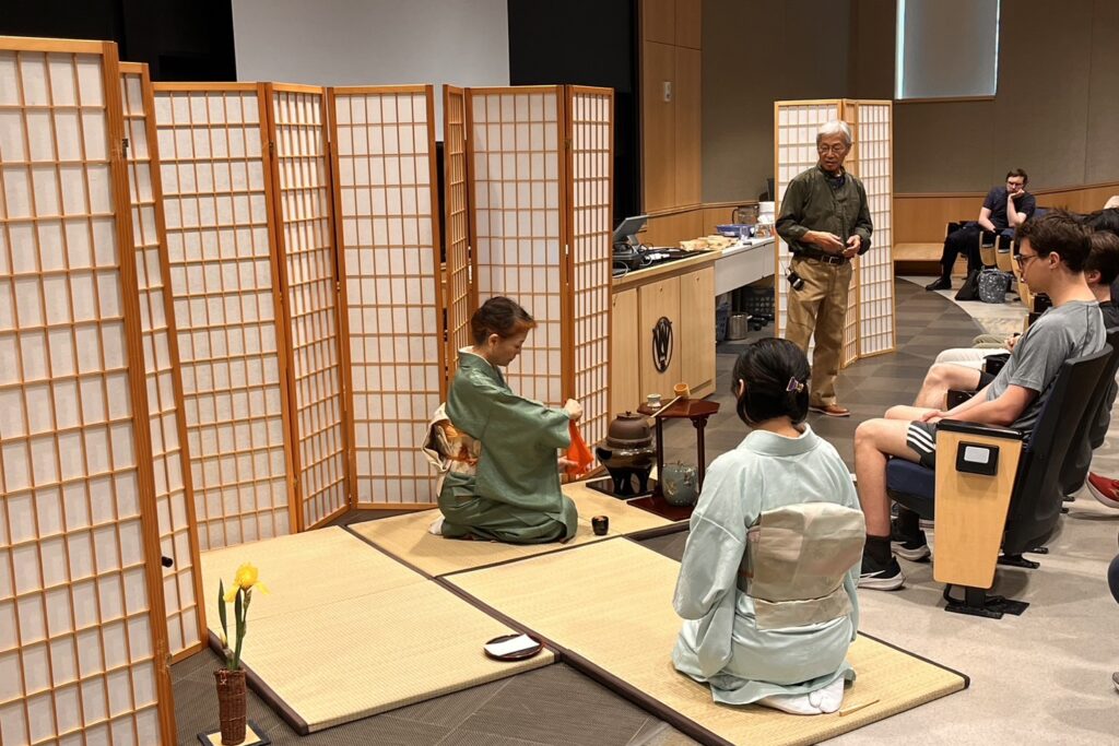 2024年4月 毎年ワシントン大学 Kendou Club と Japan Peer Network の学生さんからの依頼でお茶のデモンストレーションを披露していますが、今年は去る4月28日に大学構内のHillman Hallで開催されました。 準備期間が短かったため例年より参加者数が 少なかったようですが、それでも20名あまりの学生さんたちがお茶の歴史や精神についての講義を熱心に聞いてくださった後、お茶のお点前を興味深く見てくださいました。参加者全員にお菓子とお茶をお出しした後に質疑応答がありました。 日本文化の一つである茶道は、やはり欧米文化の中で育った学生さんや日本以外のアジアの国々からの学生さんにとっては、ミステリアスな部分が多いのでしょう。様々な質問がありました。また、お抹茶はどこで買えるのか?どんなお抹茶が良いのか?など抹茶に関する質問が多く出ました。昨今の抹茶ブームがうかがい知れました。 Every year, we present a tea ceremony demonstration at the request of students from the Washington University […]