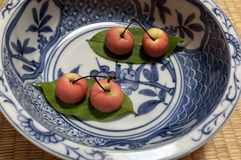 7月のお菓子は練りきりのサクランボ。庭の桜の葉っぱを敷いてお出ししました。 お花は5月から我が家の庭で咲き続けている桔梗です。 箱に和物茶入れのお濃茶、大津袋に入った黒棗のお濃茶。この2種類のお濃茶をお客様にお点てする点前です。 濃茶を2服点てるのですから時間がかかります。その上にお箱を扱う際のあしらい方がパズルのようで、なかなかスムーズに行きません。『脳のトレーニングになりますね』と皆さん真剣に覚えていました。 The sweets for July are cherry nerikiri, served on cherry leaves from our garden. The flowers are bellflowers that have been blooming in our garden […]