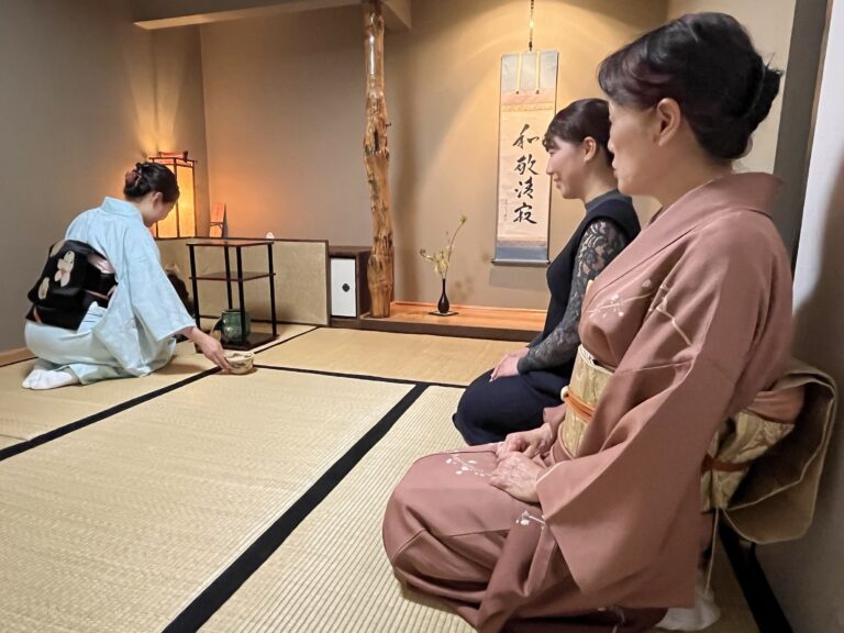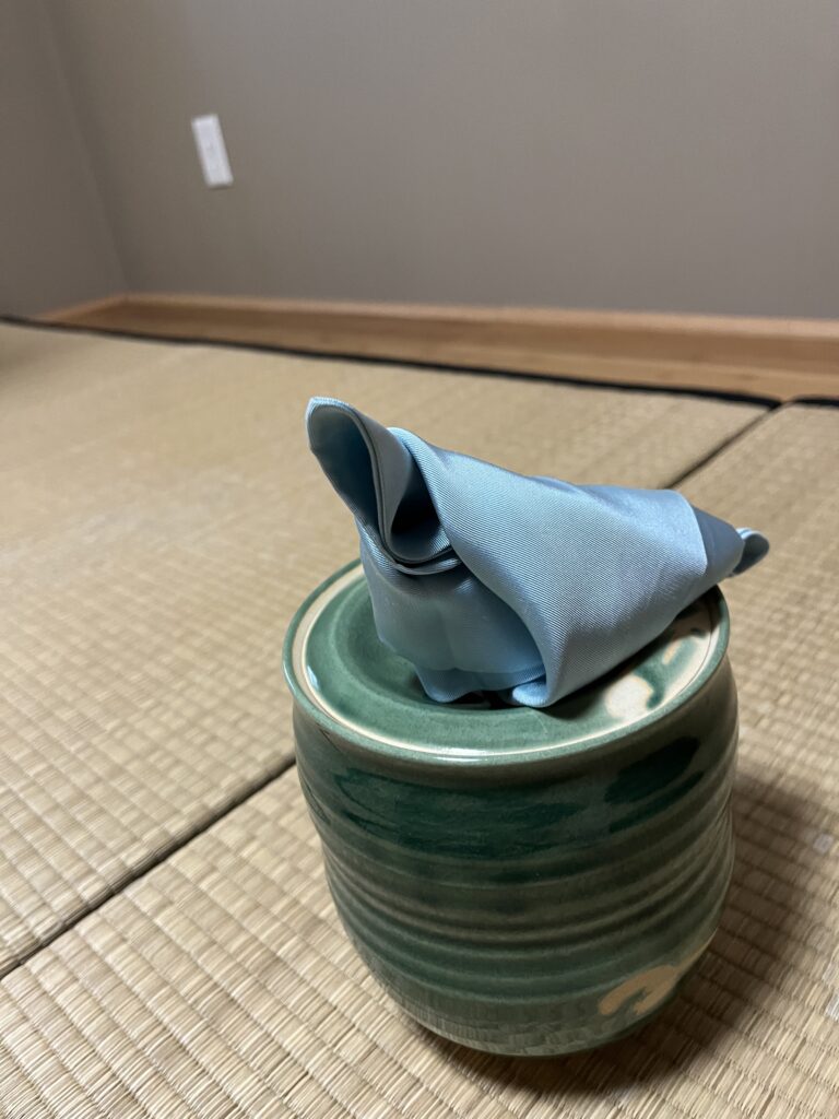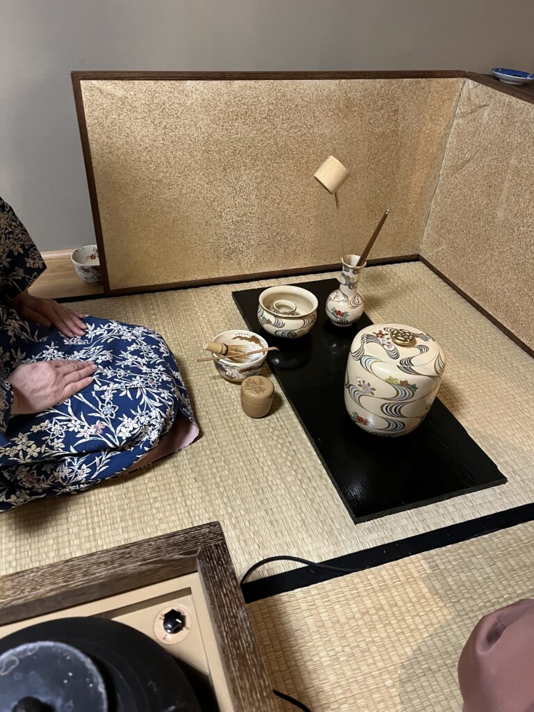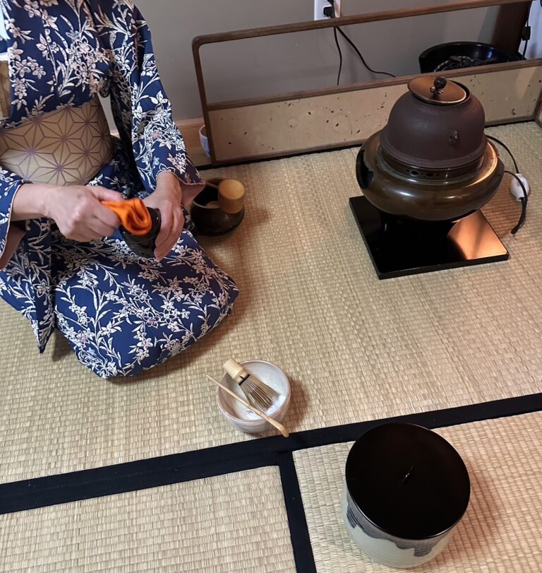 2025年9月第二週   日本祭が終わって一週間はお稽古はお休みして、ゆっくりと疲れをとることが出来ました。 秋のお点前、茶箱の月点前をお稽古しました。 茶箱の中でも器据え、火箸、香合、小羽根、ウグイスなどのお道具が総出のお点前。 箱のふたに、小羽根を置き、その下にまあるい香合を置くとまるで、雲間に満月が出たような景色になります。 ややこしいお点前ですが、風流で、繊細な月点前に感動です。   After the Japan Festival, we took a week off from tea practice, which gave us a chance to rest and recharge.When we […]