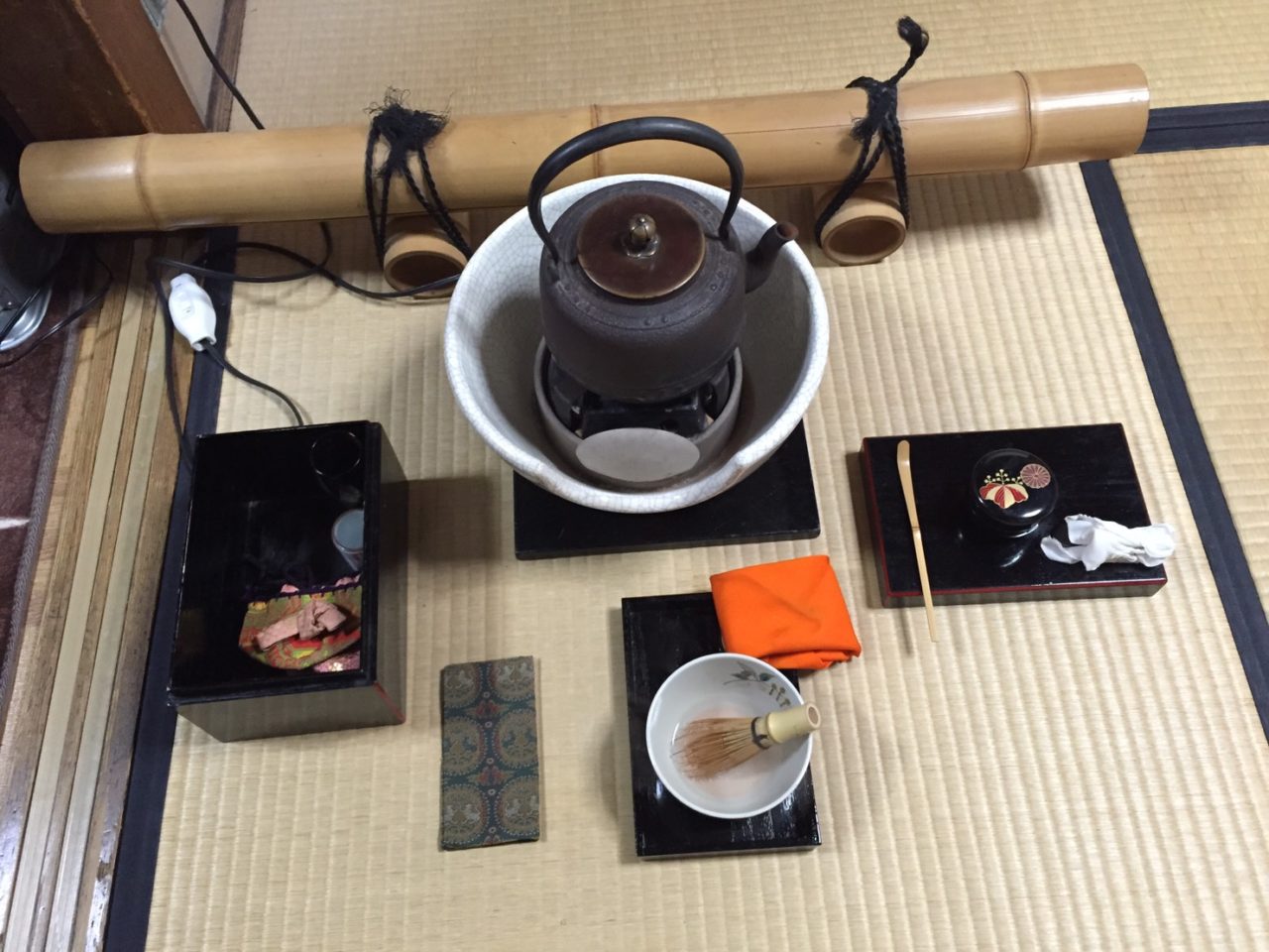 今回からしばらくは、先生の京都からのお便りです。 先週の土曜日、京都の南に位置する宇治の県神社で裏千家南支部青年部によりお釜がかけられましたので、林先生社中9名でお邪魔してきました。 お庭は綺麗に手入れされていて、夕暮れで陽の翳った坪庭をポッとあかるく白い山茶花の花が咲いていました。待合のお床には秋らしい栗と紅葉の画のお軸。お菓子は『お玄猪(おげんちょ)結び』。蹲踞で手と口を清めて席入りです。お濃茶は4畳半台目のお茶室で。お濃茶をいただいた後は広間でお薄をいただきました。 Last Saturday, nine member of our Hayashi sensei’s group joined the ochakai (tea gathering) at Agata shrine, Uji-city in Kyoto. This ochakai was organized by the youth […]