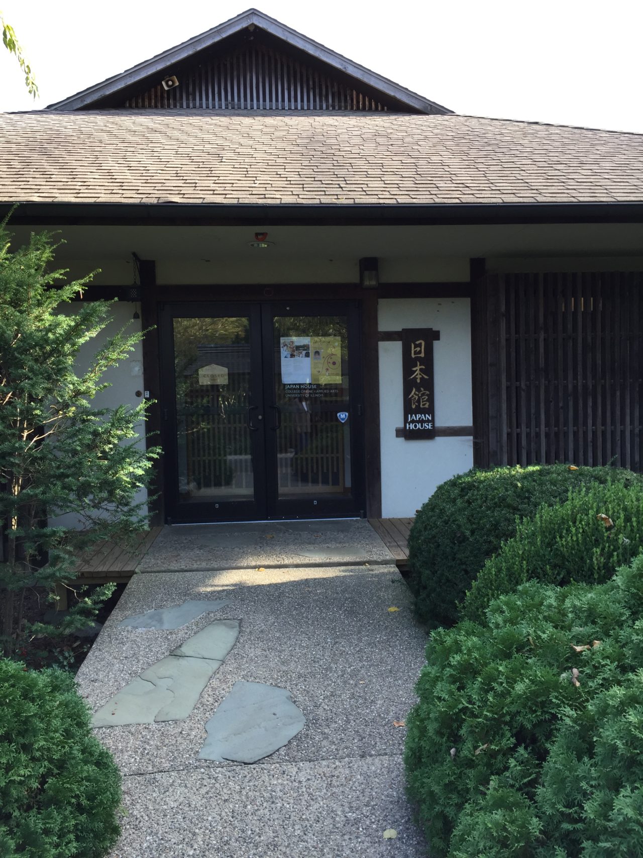 先週末に訪れたJapan Houseの見学の続きです。1964年からイリノイ大学の名誉教授佐藤晶三先生が教鞭をとり、日本の文化や芸術の紹介が始まりました。1875年に日本館が開設され、その後98年には現在の日本館が完成しました。中にはお茶室も三室有り、芸術学部の授業に使われる他、地域の人たちを対象に生け花や茶道の教室も開かれています。周囲を美しい日本庭園に囲まれ、ここにいるとアメリカの中心にいるということを忘れてしまいそうです。今はちょうど紅葉の美しい時期でしたが、桜の木も庭園周囲に植えられており、桜の咲く春もまた違う風情が楽しめるのではないかと思います。 Japan Houseのリンクはこちらです。